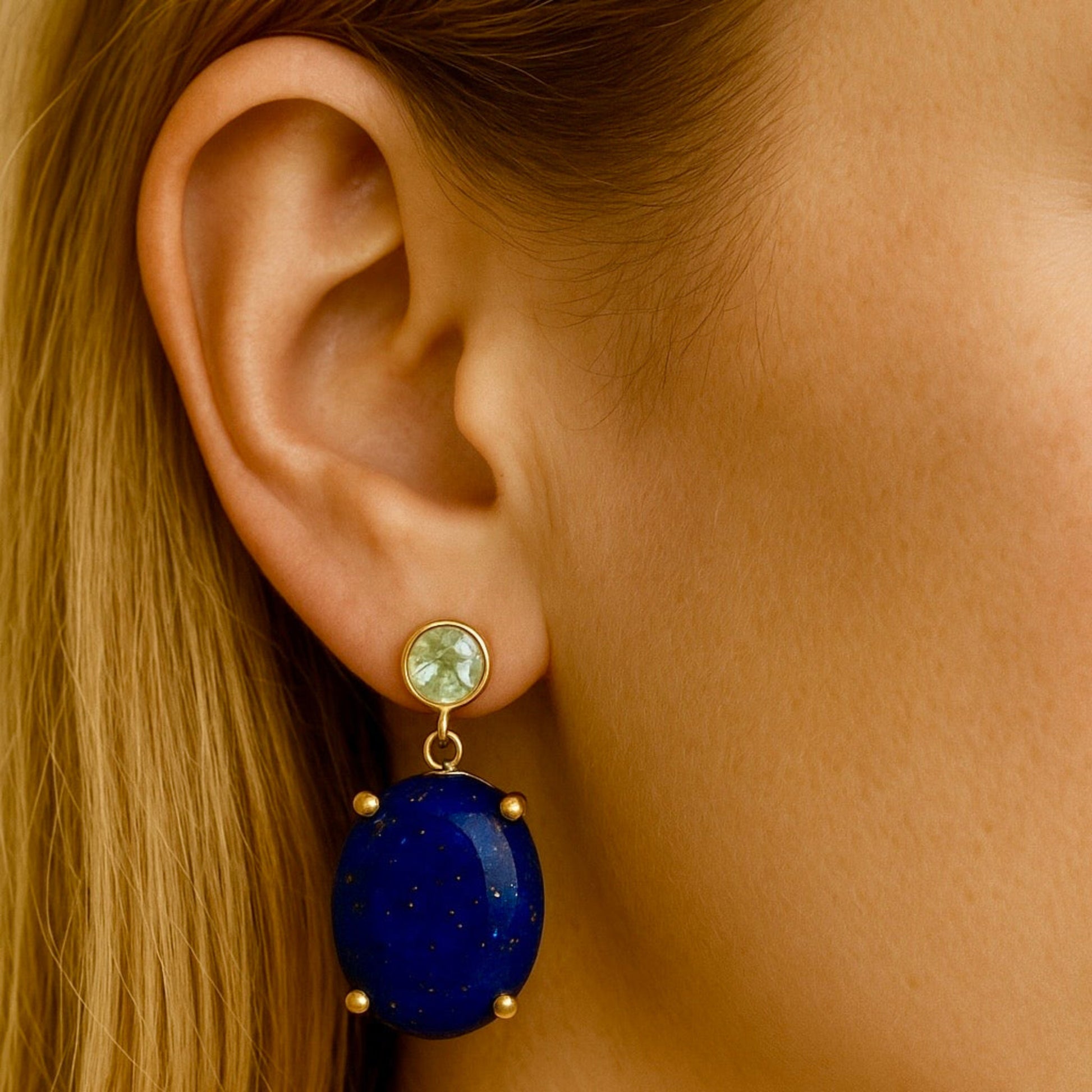 Azure Lapis Drops - Green Amethyst & Lapis Lazuli Earring Drops
